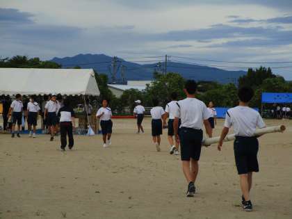 8月31日(木)朝の様子 公開日 2023/08/31 更新日 2023/08/31 今日の興南中 8月の最終日も気温が高くなる予報でしたが、雲と風のおかげで、外での活動ができました。予行練習のために、リーダーや係の生徒は少し早く登校して準備をしてくれました。ありがとう!
