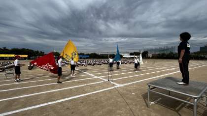 第41回体育大会 その2 公開日 2023/09/02 更新日 2023/09/02 今日の興南中 各団団長が力強く選手宣誓し、実行委員会の指揮で準備運動をしました。 エール交換では、興南中学校に受け継がれる応援歌を全校生徒で声高らかに歌いました。