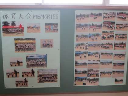 2学年は、金沢校外学習に向けての準備が始まっています。 3学年の掲示板には、体育大会の思い出が掲示されています。