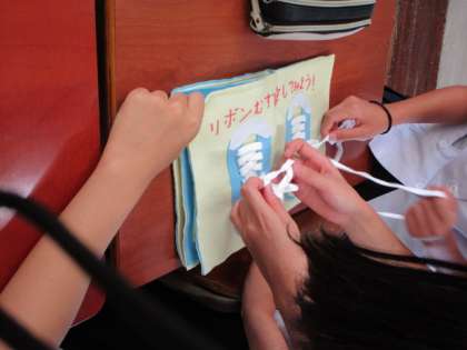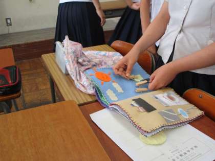 3年生 授業の様子 公開日 2023/09/14 更新日 2023/09/14 3年生 6限、3−1では、技術・家庭科(家庭分野)の授業で、製作した「幼児が喜ぶおもちゃ」で遊んでみました。友達のおもちゃに感心しながら、楽しんでいました。 中学生も喜んでいるようでした。