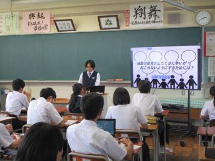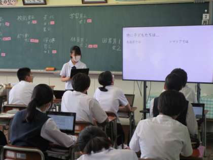 3年生 総合的な学習の時間 発表会 公開日 2023/09/22 更新日 2023/09/22 3年生 3年生は、総合的な学習の時間に、「平和な世界を実現するために、私たちができることは何か」をテーマに発表しています。 上:3−1 中:3−2 下:3−3