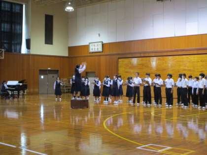 朝から、校舎に歌声が響きわたります。パート練習をしたり、指揮者の指示に合わせる練習をしたりと、朝の20分間の使い方を各学級で工夫していました。