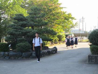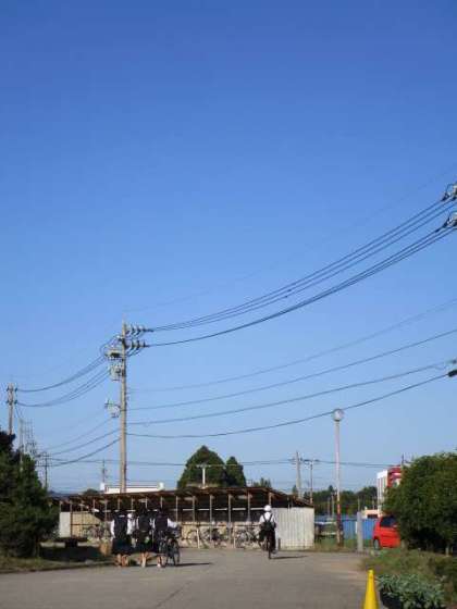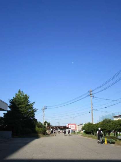 青空に白い月が見えました。さわやかな朝です。登校する生徒の挨拶もさわやかです。