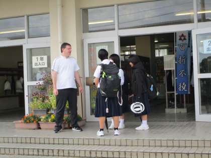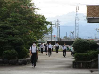 おはようございます!10月4日(水) 公開日 2023/10/04 更新日 2023/10/04 今日の興南中 さわやかな朝です。登校した生徒が、生徒玄関でALTの先生と楽しそうに話をしていました。 本日はリフレッシュデーですが、合唱部は「興南のつどい」に向けて放課後に活動します。