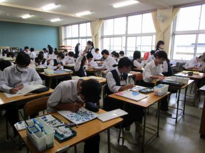 2限の授業の様子です。 上:1−1 保健体育 中:1−2 英語 下:1−3 美術
