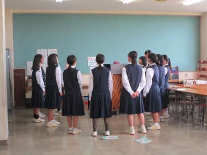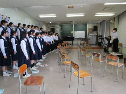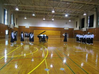 今朝は、1年生が特別教室で練習の日です。上級生の合唱を聞き、練習方法を見習って、日に日に成長しています。