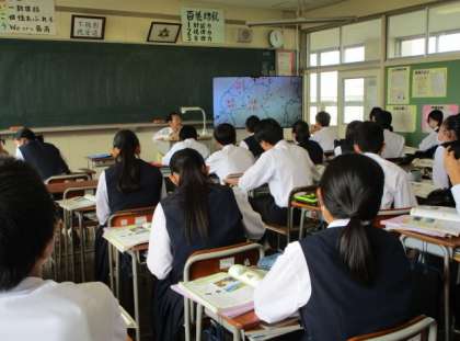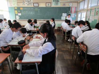 4限、教師の問いかけにみんなで答えながら授業が進んでいました。