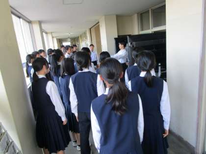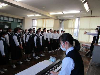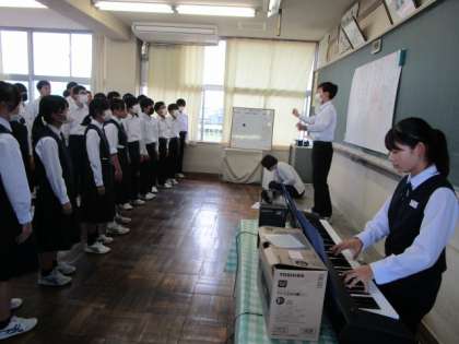 2年生は、教室で、廊下での合唱です。気持ちが入った歌声です。