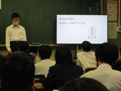 1年・総合的な学習の時間 公開日 2023/10/23 更新日 2023/10/23 1年生 10月20日(金) 今日の総合的な学習の時間は、これまで各自が調べてきた「AMAZING TOYAMA」のクラス発表会でした。 それぞれがスライドでまとめたことを上手に発表していました。 質問されたことにもしっかりと答えていました。 (上:1年1組) (中:1年2組) (下:1年3組)