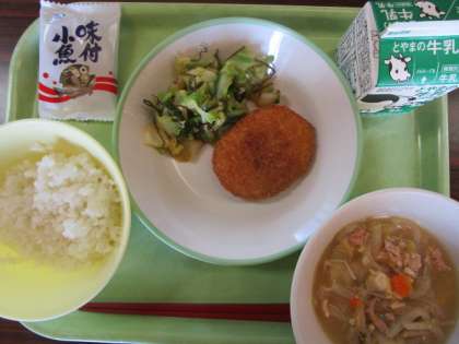 今日の給食 公開日 2023/10/26 更新日 2023/10/26 今日の興南中 10月26日(木)の献立は、 ごはん、牛乳、豆とかぼちゃのコロッケ、昆布和え、はくさいなべ、味付け小魚 です。 ころもはサクサク、中は甘いかぼちゃとお豆のおいしいコロッケでした。 10月もりつけ表はこちらから。