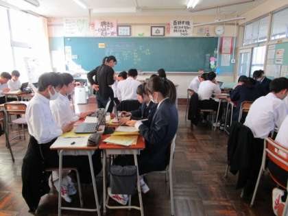 1限の授業です。 上:3−1 国語 中:3−2 技術・家庭(家庭分野) 下:3−3 理科