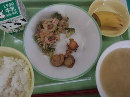 今日の給食 公開日 2023/10/27 更新日 2023/10/27 今日の興南中 10月27日(金)の献立は、 ごはん、牛乳、ほたてのバターしょうゆ焼き、切干大根のペペロンチーノ、マカロニスープ、バナナ です。 切干大根のペペロンチーノ、ヘルシーメニューです。 今週もおいしい給食をありがとうございました。 10月献立表はこちらから。
