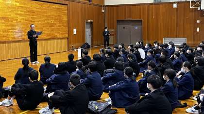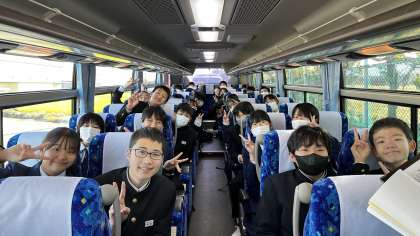 出発式を行い、バスに乗りました。 元気いっぱいです! 金沢には9時20分到着予定です。