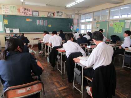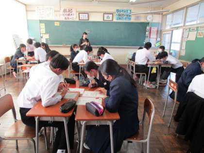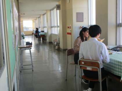 6限、3年生は学級の時間に自習をしながら廊下で面談をしているクラスもありました。