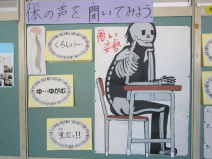 11月の保健目標は「姿勢を正しくしよう」です。保健室前に立ち止まって、掲示物を見たり、姿勢を確認したりする生徒が増えそうです。