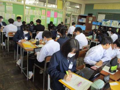 1年・企業見学事前学習 公開日 2023/11/07 更新日 2023/11/07 1年生 11月6日(月) 5限 今日の学活では、10日(金)にクラス別で見学に行く企業についての事前学習を行いました。 1組は中越合金鋳工(株)本社へ、2組は(株)石金精機本社工場へ、3組は魚岸精機工業(株)本社に行きます。 当日は、給食後にバスに乗って出発です。 (上:1年1組) (中:1年2組) (下:1年3組)