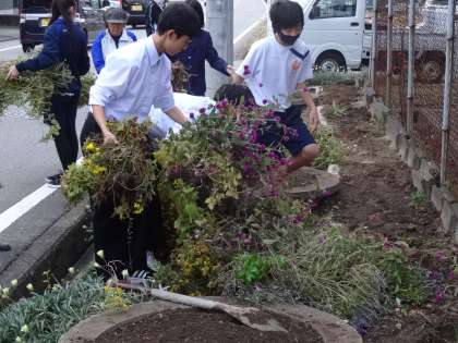 第1回(後期)フラワーロード花壇整備 公開日 2023/11/08 更新日 2023/11/08 今日の興南中 後期に入って初めてのフラワーロード整備を行いました。 今日は夏の花の苗を取り除き、肥料を混ぜながら土をならしました。 2週間後にチューリップの球根を植える予定です。 来年きれいな花を咲かせるためには、この段階からの準備が大切ですね。 指導してくださった地域のみなさん、ありがとうございました。 美化実践部員のみなさん、お疲れ様でした。