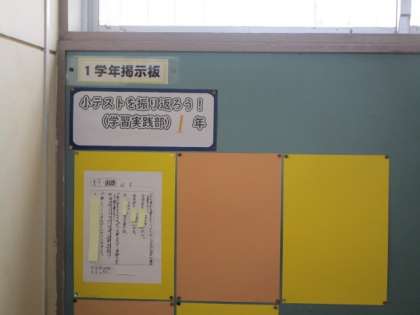 学習実践部の取組 公開日 2023/11/16 更新日 2023/11/16 今日の興南中 学習実践部が授業で学習した内容の小テストを実施しています。 掲示板には、振り返りができるように掲示物がはられていました。