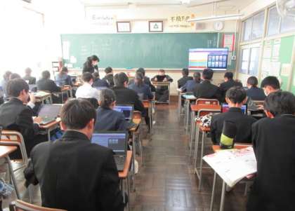 4限の授業の様子です。 上:1−1 英語 中:1−2 英語 下:1−3 理科