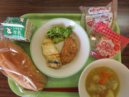 今日の給食 公開日 2023/12/04 更新日 2023/12/04 今日の興南中 12月4日(月)の献立は、 コッペパン、牛乳、◆揚げ魚のレモン味、◆ハムカツ、そえ野菜、ポトフ、○イチゴのカップケーキ、○ガトーショコラ です。 今日はセレクトメニューでした。◆魚かハムか、○イチゴかチョコか、どちらを選んでも満足できたのではないでしょうか。 12月献立表はこちらから。