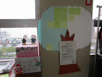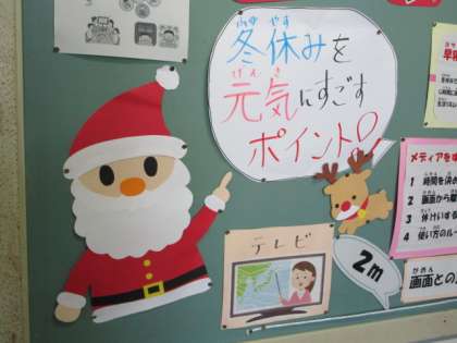 季節を感じる場所 公開日 2023/12/12 更新日 2023/12/12 今日の興南中 学校の様々な場所で「冬」を感じます。 生徒会の「興南の木」は冬仕様で雪の木になりました。 興南ポストにもサンタクロース登場。 花瓶の下もクリスマスカラー!心が和みます。