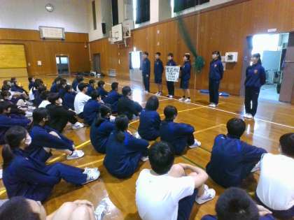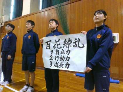 2年生・学年集会・その2 公開日 2023/12/13 更新日 2023/12/13 2年生 12月13日(水) 10:25 2学年学年生徒会により、先日2学年生徒の承認を得た学年スローガンが紹介されました。