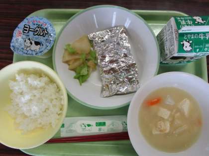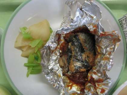 今日の給食 公開日 2023/12/15 更新日 2023/12/15 今日の興南中 12月15日(金)の献立は、 ごはん、牛乳、さばの銀紙焼き、かぶの色どり、打ち豆汁、ヨーグルト です。 中は・・・、甘辛みそが美味しい銀紙焼きです。