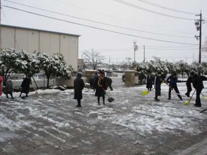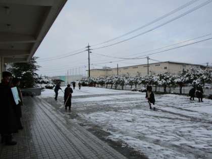 おはようございます!12月18日(月) 公開日 2023/12/18 更新日 2023/12/18 今日の興南中 今朝は、この冬初めての積雪でした。2学期最後の週のスタートです。 3年1組の生徒が玄関前の除雪をしてくれました。たくさんの生徒の力で、あっという間に雪がなくなり歩きやすくなりました。 今日から三日間、午後に学期末懇談会を行います。