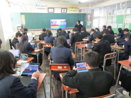 3限の授業の様子です。 上:1−1 英語 中:1−2 理科 下:1−3 英語