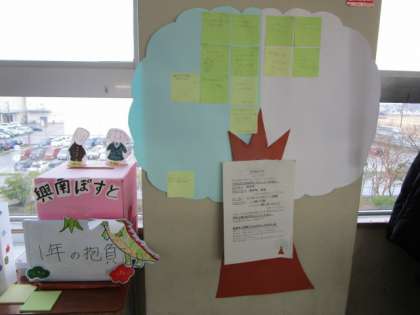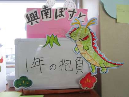 生徒会の取組 公開日 2024/01/12 更新日 2024/01/12 今日の興南中 冬バージョンの興南の木にも、感謝の言葉の花が咲いています。 興南ポスト、1月のテーマは「1年の抱負」です。かわいい龍がポストで待ってます。