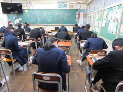 三平方の定理を利用する問題に取り組んでいます。すばらしい集中力、さすが3年生です。