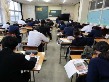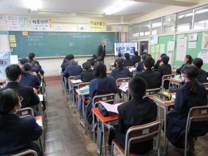 1年生 授業の様子 公開日 2024/01/18 更新日 2024/01/18 1年生 6限の授業の様子です。 上:1−1 美術 鑑賞の授業です。風神雷神図屏風を模写しながら、受け継がれる日本の美を感じています。 中:1−2 数学 基本の作図、円の接線の学習です。 下:1−3 社会 アメリカ合衆国の人々の生活について学習しています。