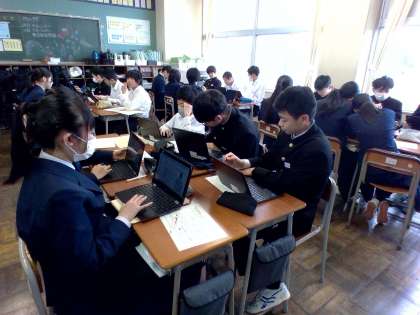 2年生・修学旅行に向けて(1月22日) 公開日 2024/01/22 更新日 2024/01/22 2年生 1月22日(木) 5限 2年生は5月の修学旅行に向けた学習を始めました。 修学旅行の「京都班別学習」のメンバーが発表され、まず富山から広島までのルートを確認しました。班のみんなで協力しながら、クロムブックを使って確かめていました。 (写真 上:1組 中:2組 下:3組)