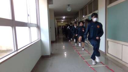 1月22日放課後の部活動・その2 公開日 2024/01/22 更新日 2024/01/22 今日の興南中 1月22日(月) 放課後 写真 上:1階科学室前廊下でラダートレーニングをするソフトテニス部 写真 下:体育館前廊下でトレーニングする卓球部