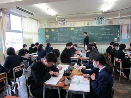 2年生 授業の様子 公開日 2024/01/22 更新日 2024/01/22 2年生 上:2−1 保健体育 柔道の実技テストの時間です。ペアで交代に技をかけます。真剣に練習をしてテストに臨みます。 中:2−2 理科 電気量と熱量について学習しています。振り返りをして確認問題に取り組んでいます。 下:2−3 国語 「君は『最後の晩餐』を知っているか」班で考えた説明を発表しています。興味深いクイズを取り入れるなど、工夫がみられます。