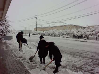 寒さや雪に負けずに生徒玄関前の除雪してくれています!