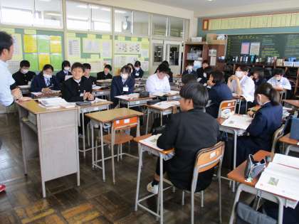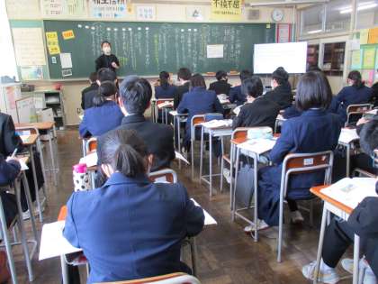 1年生・道徳 公開日 2024/01/24 更新日 2024/01/24 1年生 1月24日(水) 4限 今日は「『どうせ無理』という言葉に負けない」道徳を行いました。 どのクラスも友達の意見や先生の意見に真剣に耳を傾けて聴いていました。 (写真 上:1年1組) (写真 中:1年2組) (写真 下:1年3組)