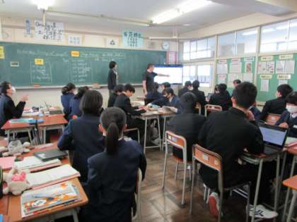 4限と5限の授業の様子です。 上:2−1 理科 中:2−2 英語 下:2−3 社会