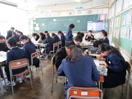 2年生 授業の様子 公開日 2024/01/26 更新日 2024/01/26 2年生 3限の授業の様子です。 上:2−1 国語 「助詞について詳しく理解しよう」 中:2−2 数学 「平行四辺形の性質の逆」が成り立つことを証明しています。 下:2−3 英語 「Research & Presentation 〜発表原稿を作ろう〜」