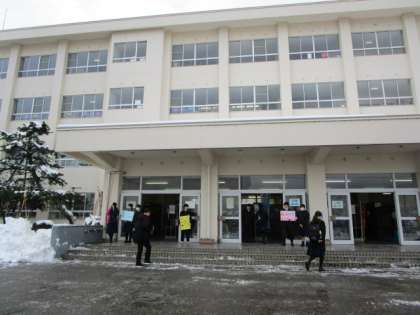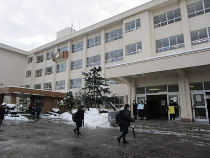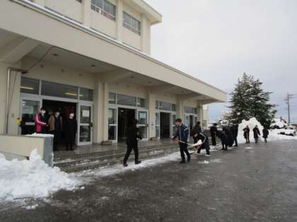 昨日から積もった雪が心配でしたが、早朝から除雪車できれいに除けていただきました。ありがとうございました。玄関付近に残った雪も、3年3組の生徒が除雪してくれたおかげですっかりなくなり、通りやすくなりました。