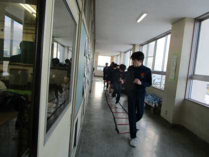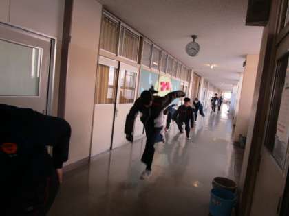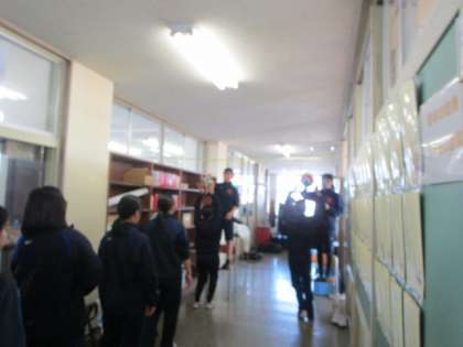 廊下で工夫して活動しています。 上:陸上競技部 中:サッカー部 下:バレーボール部