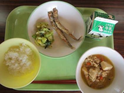 今日の給食 公開日 2024/02/15 更新日 2024/02/15 今日の興南中 2月15日(木)の献立は、 ごはん、牛乳、ししゃものから揚げ、昆布和え、厚揚げの中華煮込み です。 から揚げは子持ちししゃも、おいしくて栄養満点です。 2月もりつけ表はこちらから。