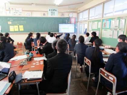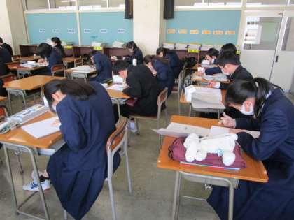 2年生 授業の様子 公開日 2024/02/15 更新日 2024/02/15 2年生 4限の授業です。 上:2−1 美術 「分かりやすく情報を伝える」 自分のマークをつくりました。集中力がすばらしい! 中:2−2 英語 「受け身の文の質問文とその答え方に注目しよう」 下:2−3 数学 「どちらが当たりやすいか考えよう!」 6章は、起こりやすさに注目して考える学習です。自分たちが行った実験のデータから考えています。
