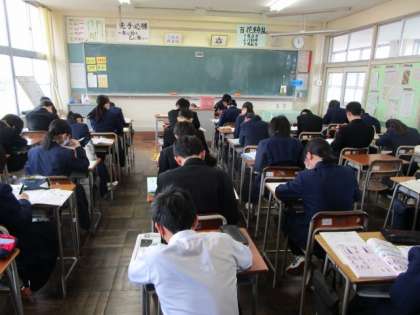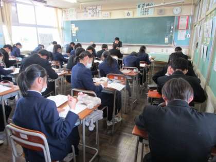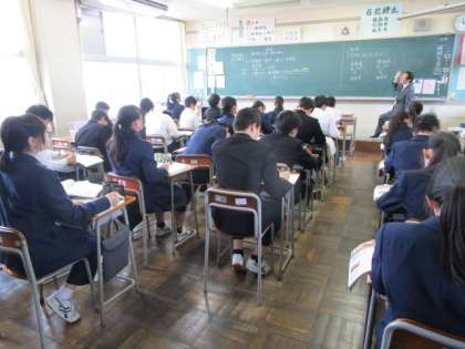 4限の授業の様子です。 上:2−1 保健体育 中:2−2 理科 下:2−3 社会