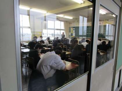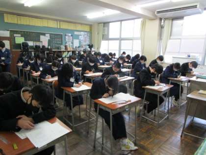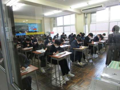 学年末評価 2日目(1年生) 公開日 2024/02/21 更新日 2024/02/21 1年生 2日目、1年生は理科、国語、保健体育のテストです。写真は2限(国語)の様子です。 上:1−1 中:1−2 下:1−3