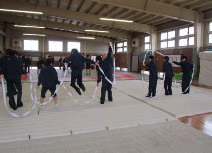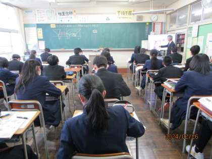 5限の授業の様子です。 上:1−1 保健体育 中:1−2 技術・家庭(家庭分野) 下:1−3 社会