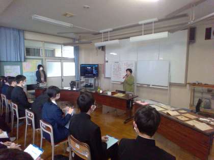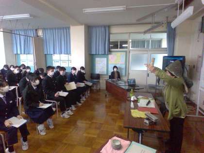 2年生は平和学習で、富山市にお住まいの稲垣さんを講師にお迎えして「富山大空襲」について教えていただきました。