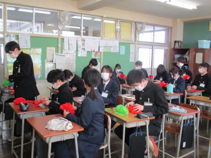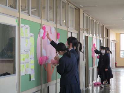 今日の6限に、3年生の先輩方に感謝の気持ちを込めてメッセージを書いたり、お花紙で花を作ったりしました。