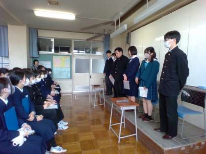 県立高校で学ぶ先輩(高校2年生)6名に来ていただき、各高校の特色の紹介や受験までの過ごし方についてのアドバイスを話していただきました。