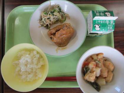 今日の給食 公開日 2024/03/07 更新日 2024/03/07 今日の興南中 3月7日(木)の献立は、 ごはん、牛乳、魚の甘みそかけ、おひたし、関東だき です。 今日の魚は鯖でした。たっぷりかかった甘みそがご飯に合います。 3月もりつけ表はこちらから。